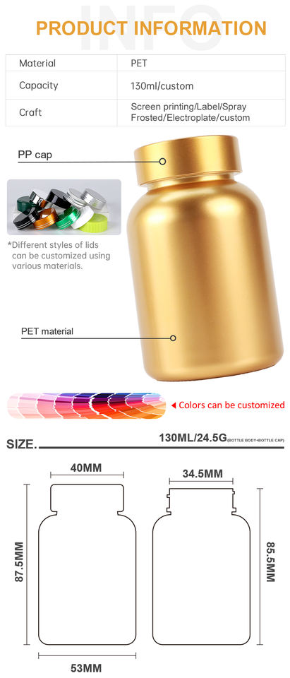 Customized Gold Electroplating PET Plastic Capsule Container Empty Bottle 130ML for Health Products with Screw Cap