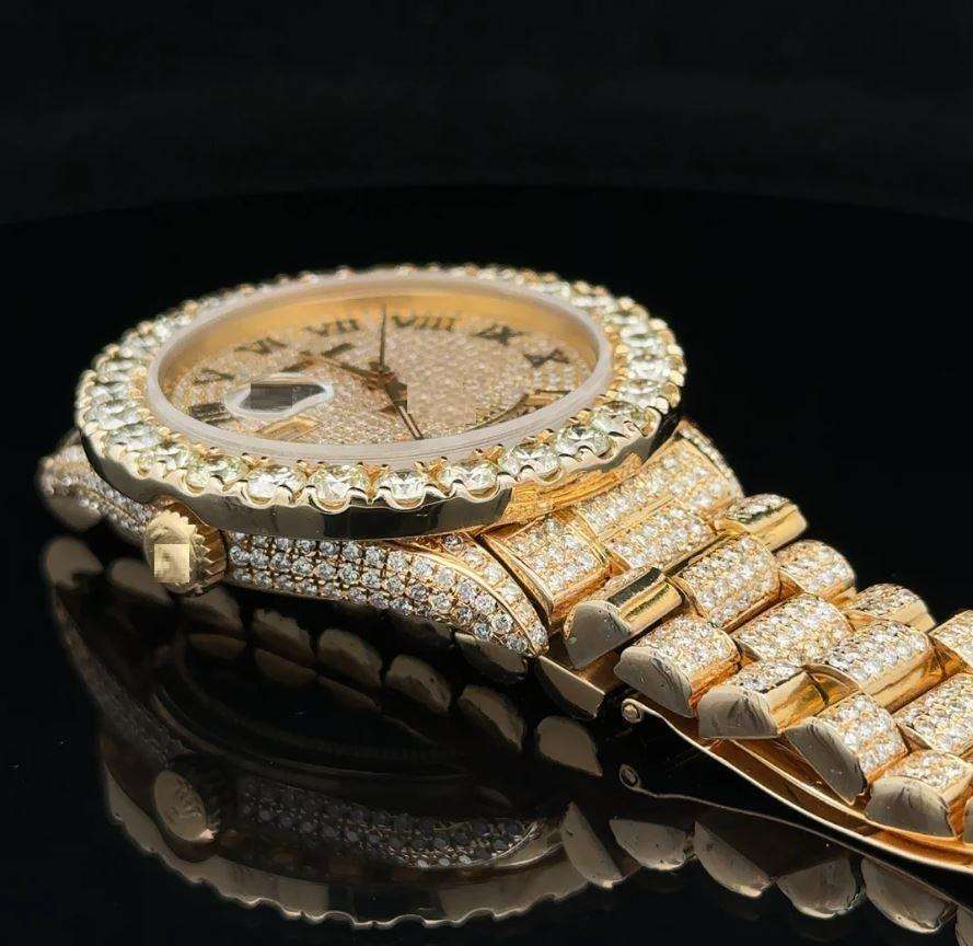 Customized Gold Tone Hip Hop Style Stainless Steel Round Moissanite Diamond Crafted Skeleton Iced Out Watch For Men and Women