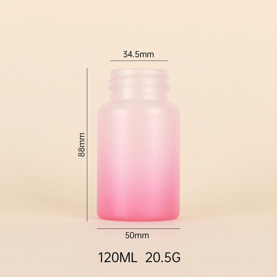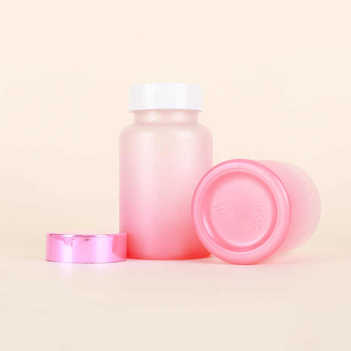Customized Gradient Ramp Pink PET Plastic Capsule Container Empty Bottle for Health Products with Screw Cap