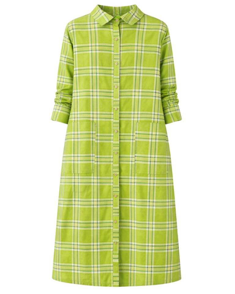 Customized Green Plaid Long Shirt Dress For Women Button Down Checkered Casual Midi Dress Customized Wholesale Manufacturer