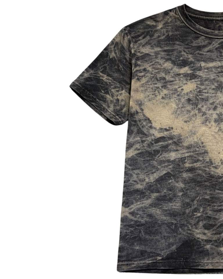 Customized Grey Black Marble Tie Dye Cotton T Shirt Short Sleeve Crew Neck Vintage Wash Mens Casual Streetwear Summer Tee