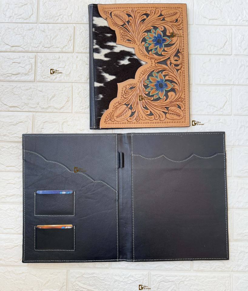 Customized Hair On Hide fur Leather Business Planner Portfolio Conference File Folders Document Folder Binder With Card Holder