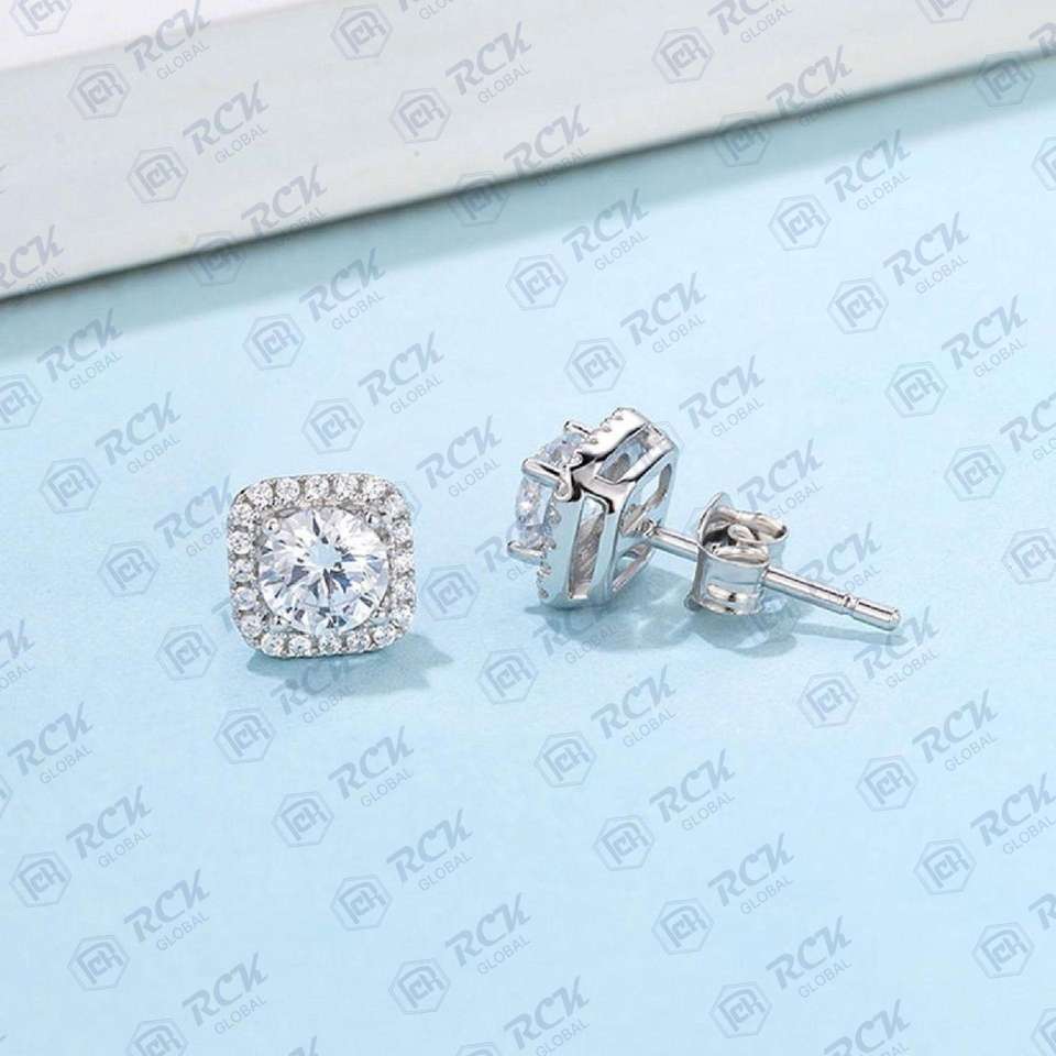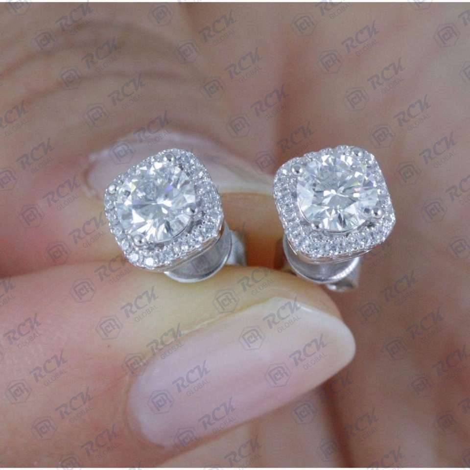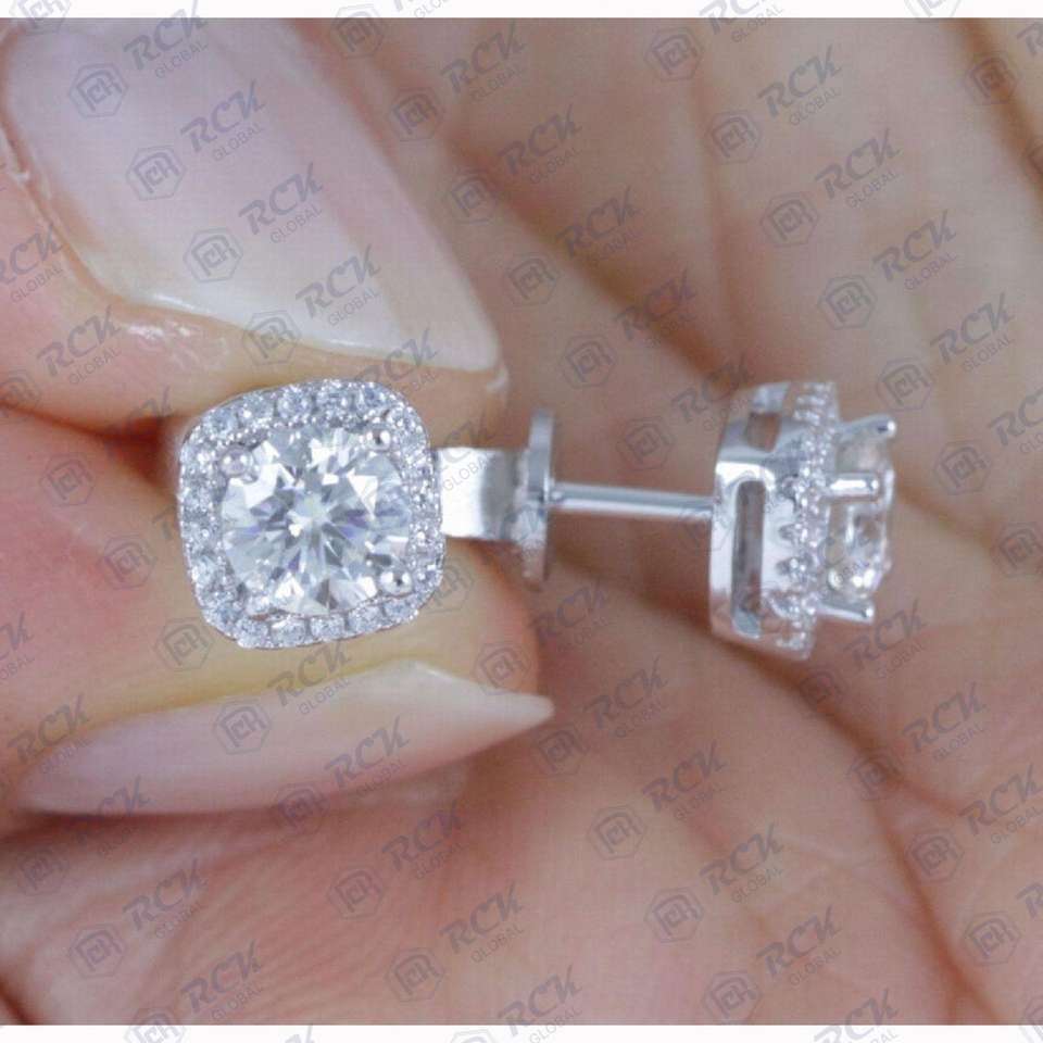 Customized Halo Solitaire Round Cut Moissanite Diamond Anniversary Gift Earrings 925 Sterling Silver Classic Earrings for Women