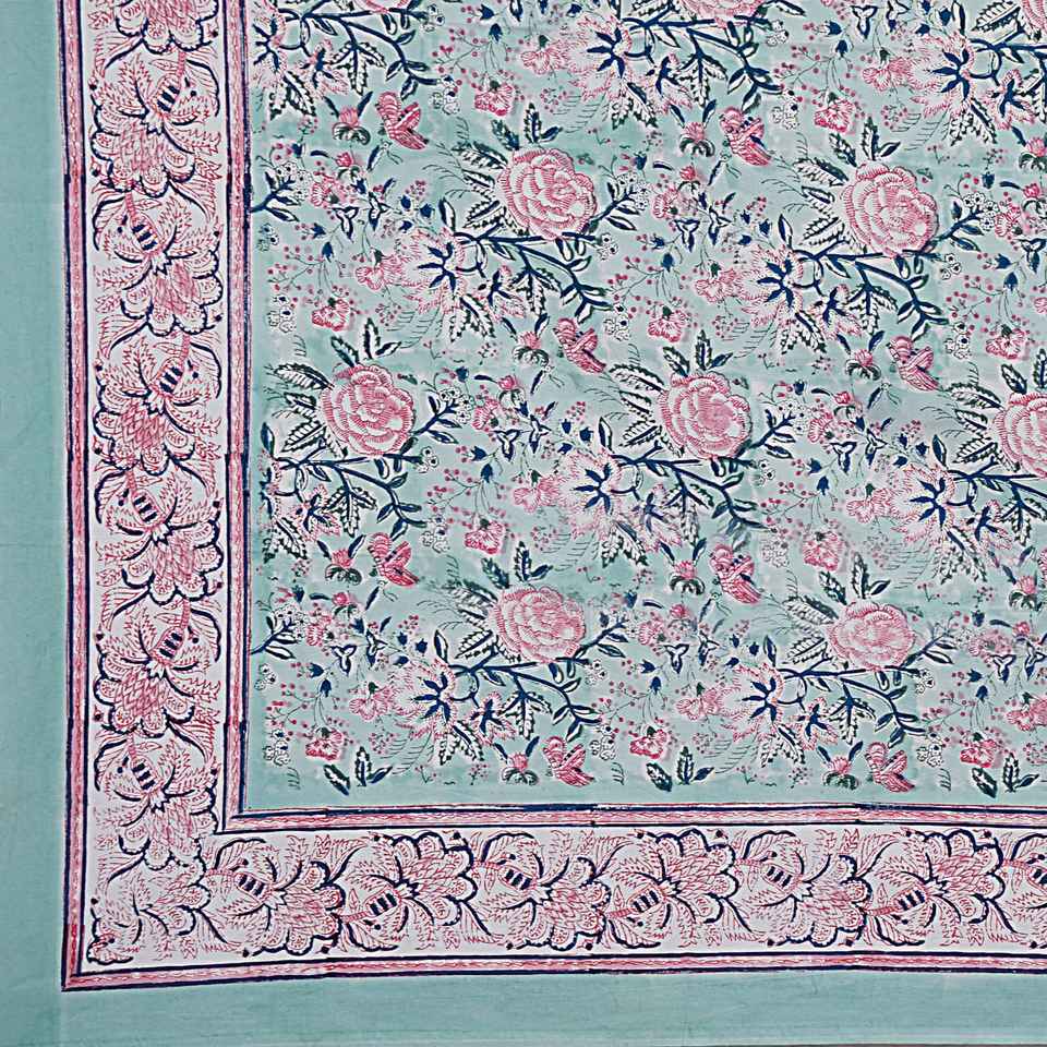Customized Hand Block Print Table Cover Floral Linen Cloth Made in India for Weddings Parties Manufactured High Quality Cotton