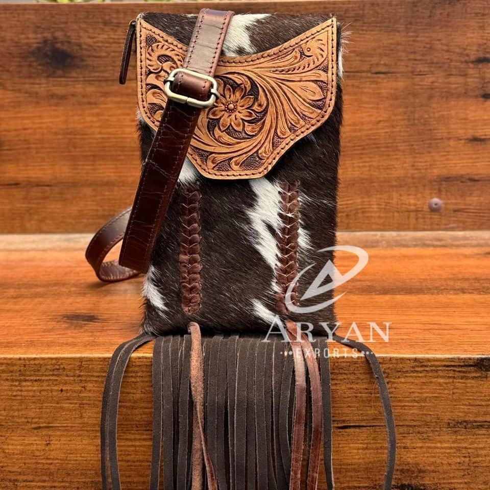 Product name:Hand Tooled Leather Fringe Crossbody Mobile Sling Bag