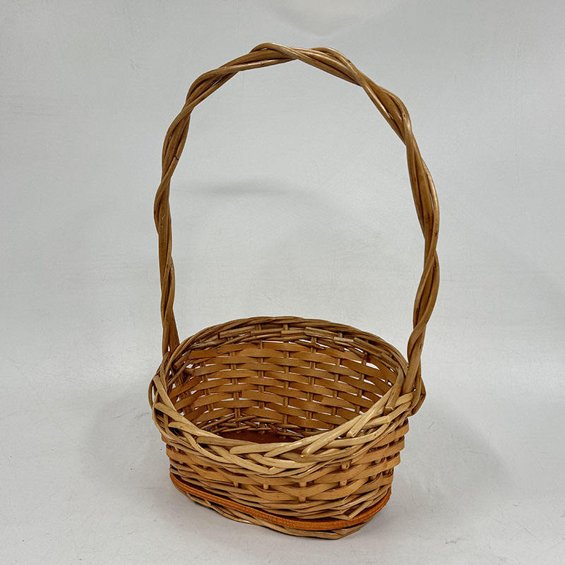 Customized Hand Woven Wicker Flower Basket With Wood Bottom