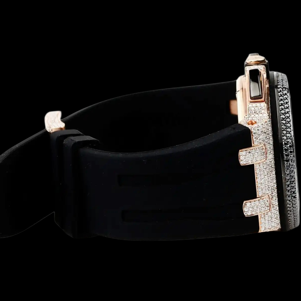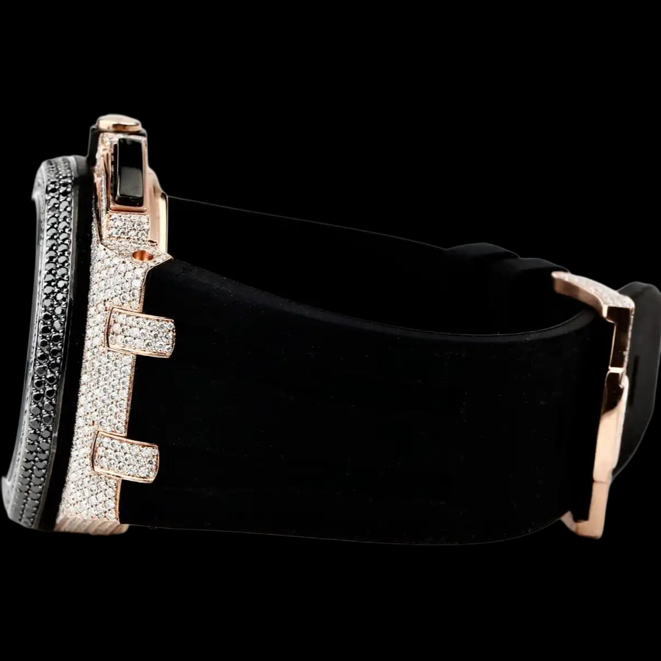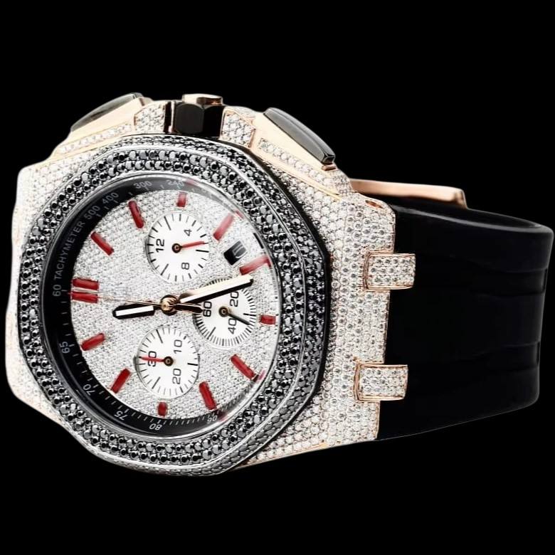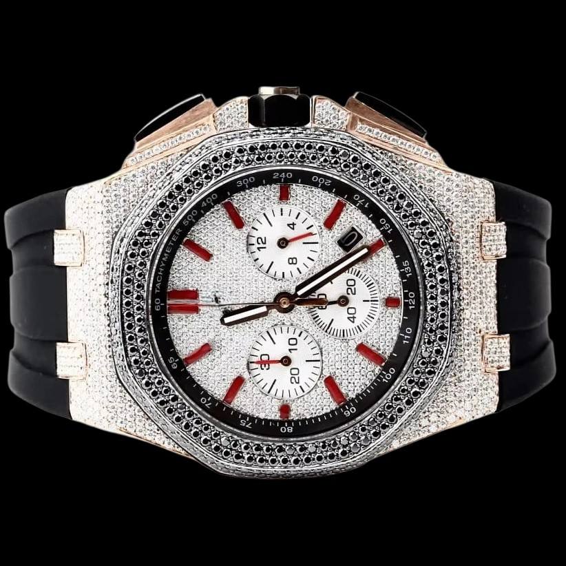 Customized Handmade Half Iced Out Round Dial Two Tone Moissanite Diamond With Black Rubber Band Mechanical Wristwatch for Man's