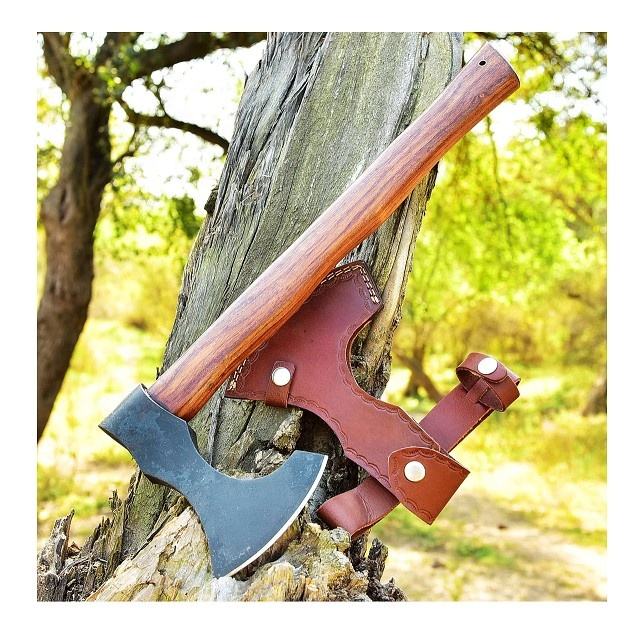 Customized Handmade High Carbon Steel axe with Wooden Handle and Fine Leather Sheath Trending axe Hot Sale axe Beautiful Axes