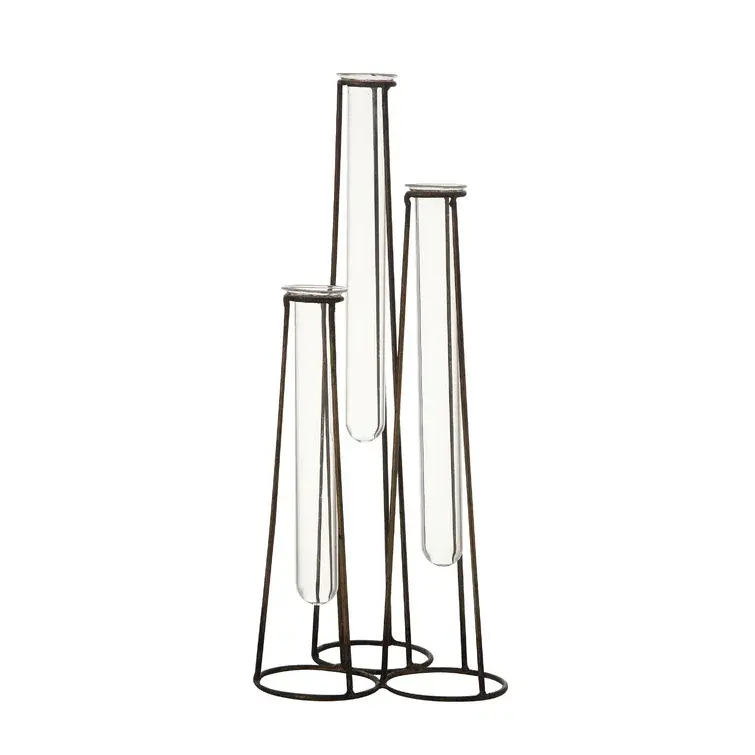 Customized Handmade Modern Metal Glass Tube Flower Vase Elegant for Table Top Decor Usage Metal Glass Tube Flower Vase Low Moq