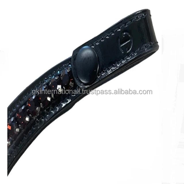 Customized Handmade Padded Leather Horse brow band with Designer Crystals Rhinestones Shining Diamante Chain and Snap Loop End