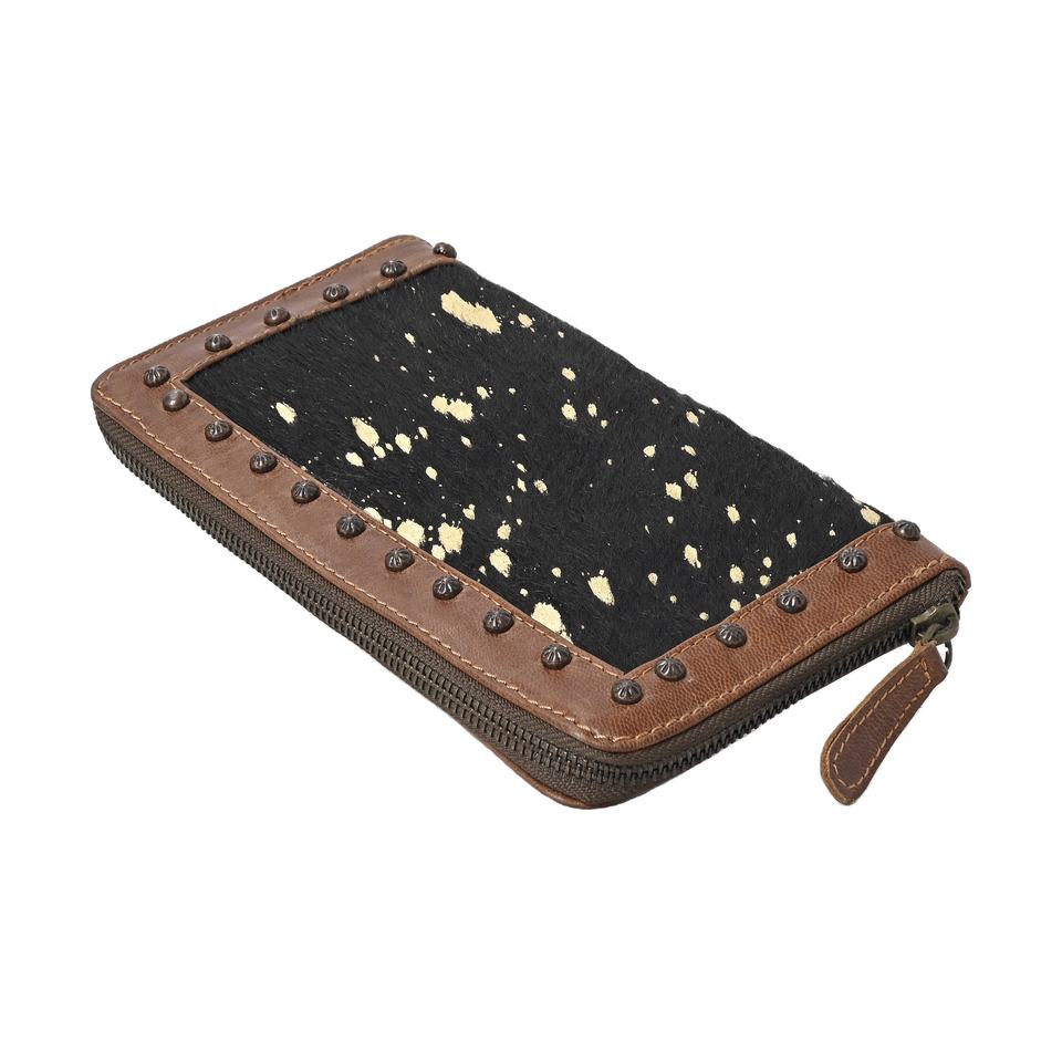 Customized Hangon Black Cowhide Card Holder Wallet with Rhinestone Beaded Embroidery & Hair on Wallet Detail
