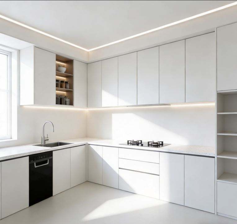Lacquered, White, Black, Laminate, High GlossCabinet Finish