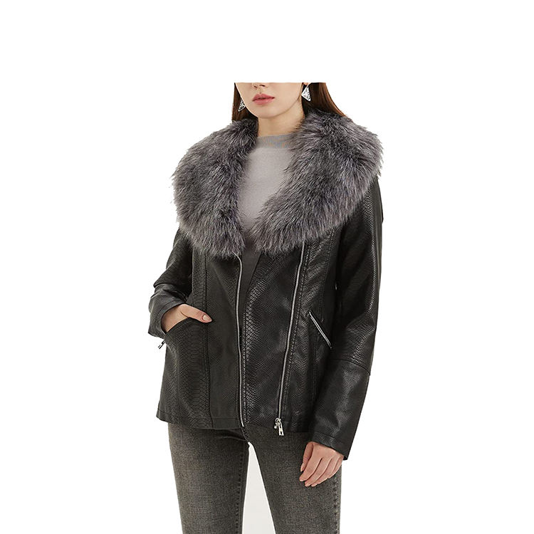 Customized High Quality Ladies Leather Jacket with Fur Collar Reversible and Waterproof Design Women's Leather Coat