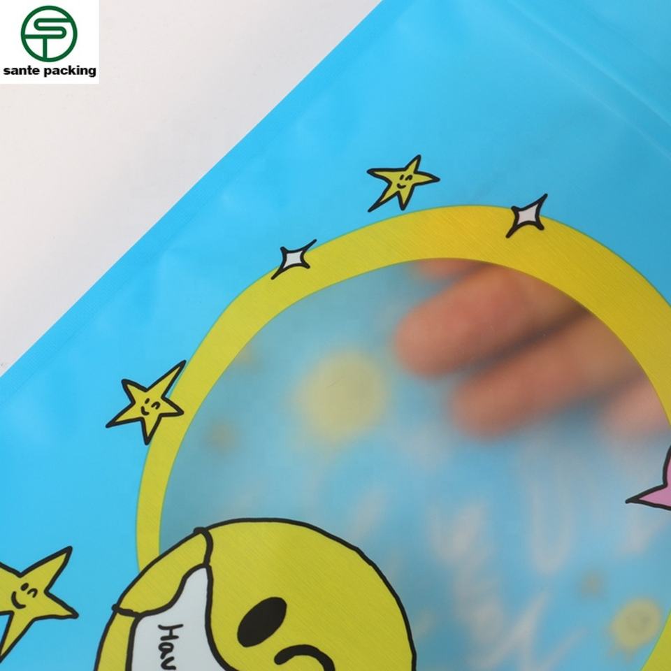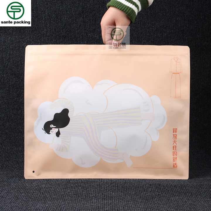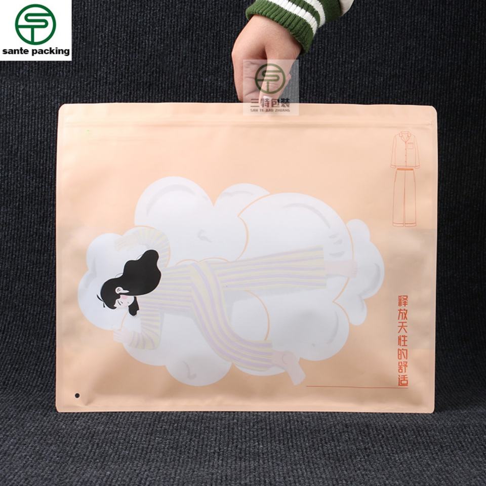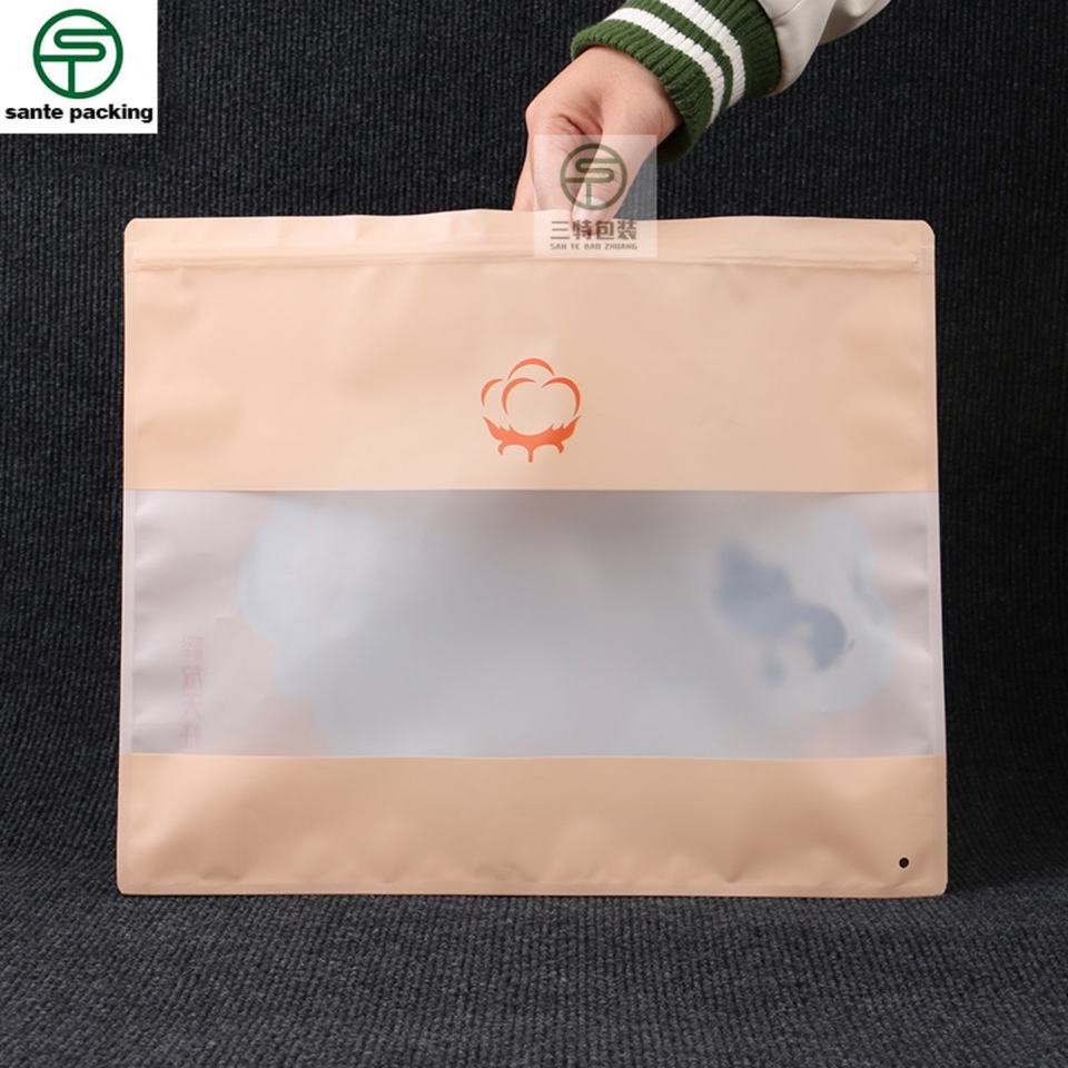 Customized High Quality Recyclable Plastic Packaging Bag for Women's Clothing Socks Valve Zipper Top Matt Surface Open Window