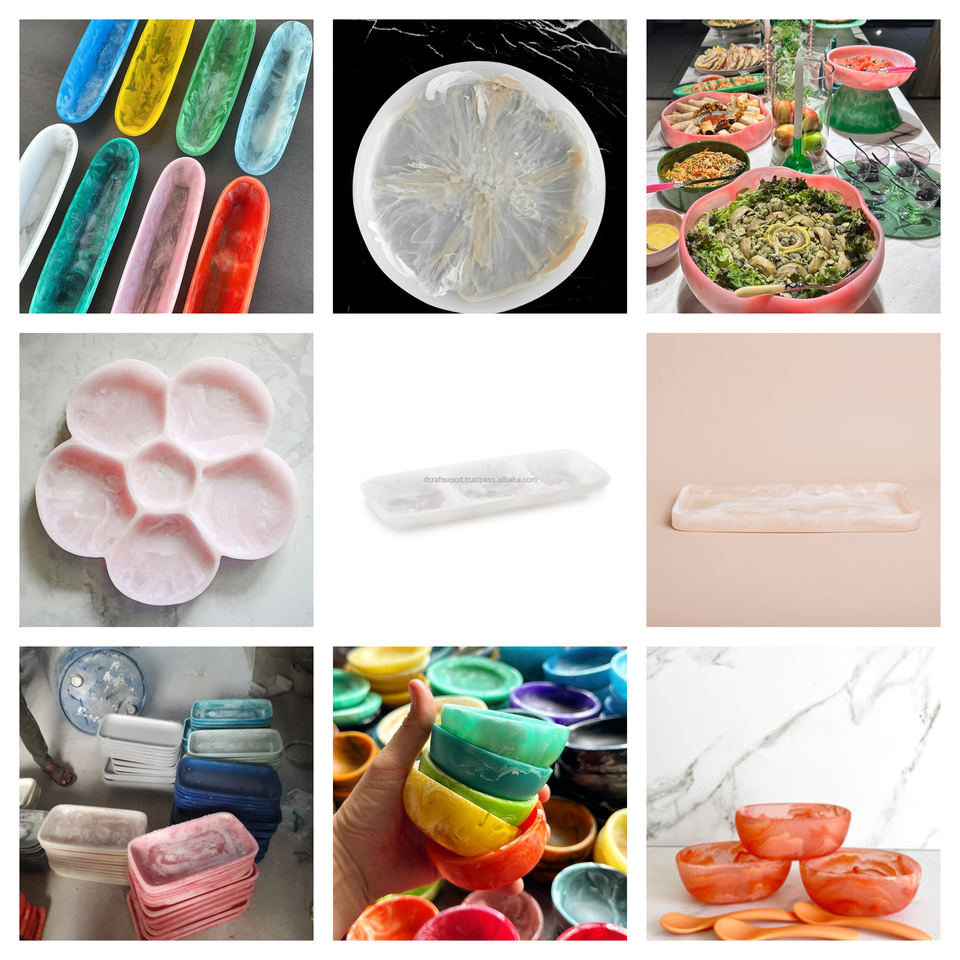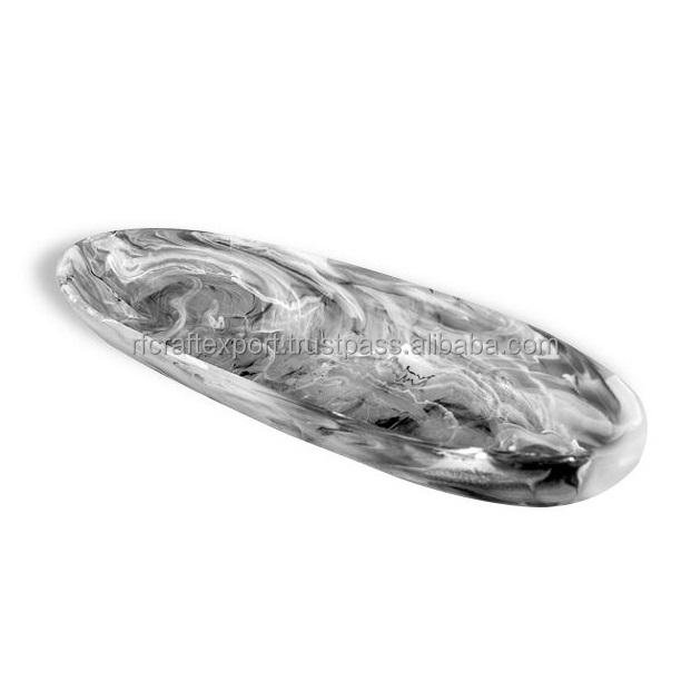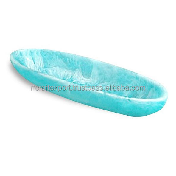 Customized High Quality Rolling Christmas Natural Resin Decoration Serving Tray Boat Bowl Aqua Swirl for Christmas Gifts