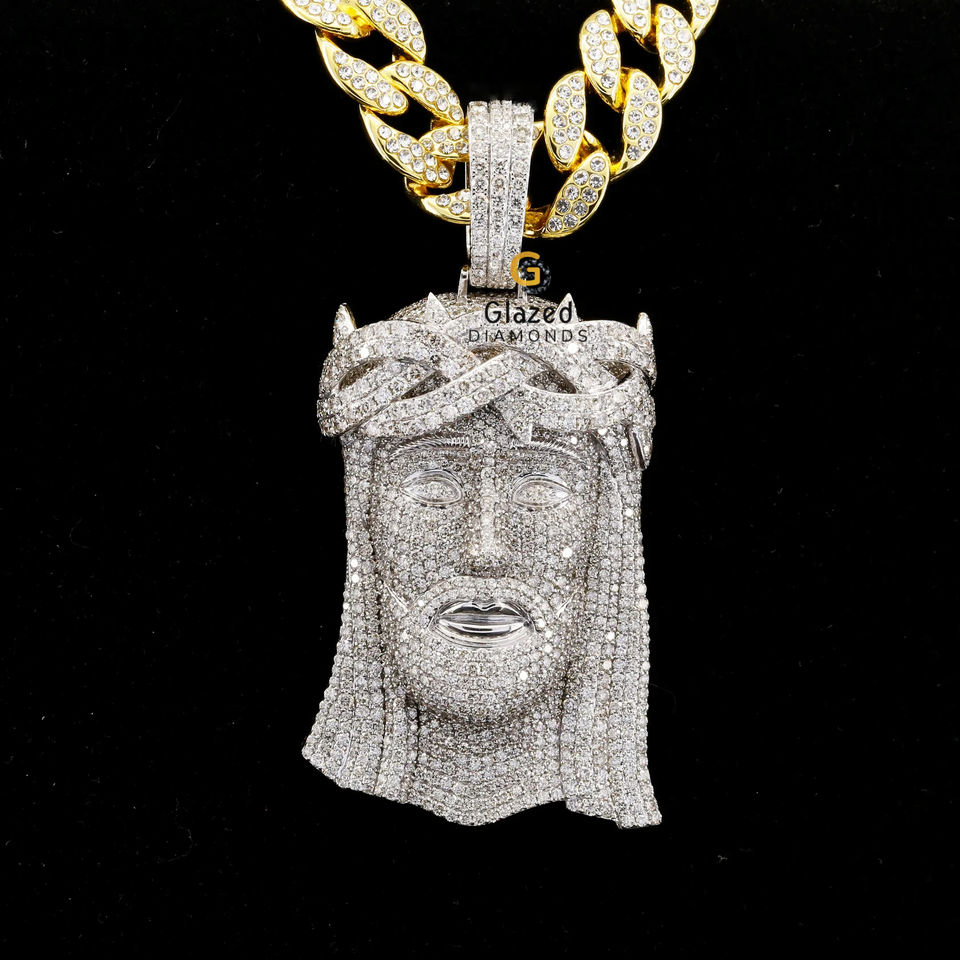 Customized Hip Hop Stylish Fully Iced Out With Round Brilliant Cut in 925 Sterling Silver Moissanite Diamond Jesus Pendant