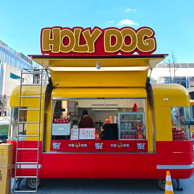 Customized Hot Dog Ice Cream Cart Mobile Concession Coffee Pizza Fully Equipped Food Truck With Lightbox