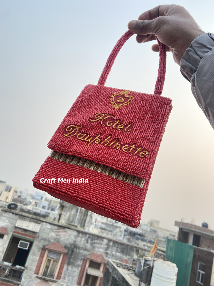 Customized Hot Red Seed Beaded Handbag with Single Handle 18*14cm Bag Full Beaded Cotton Lining Two Strap Matchbox Design