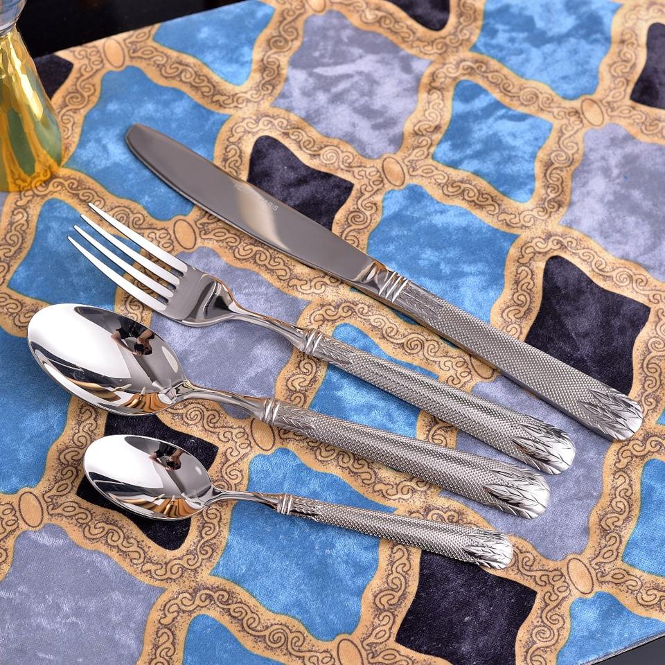 Customized Hot Selling European Style Rings Silver Stainless Steel Cutlery Set 304 Stainless Steel Flatware Set