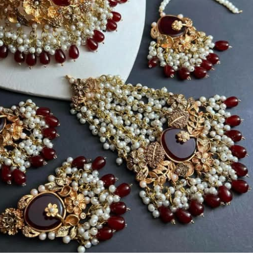 Customized Indian Pakistani Bridal Wedding Engagement Party Jewelry Handmade Gold Plated Choker Necklace Earrings Women's