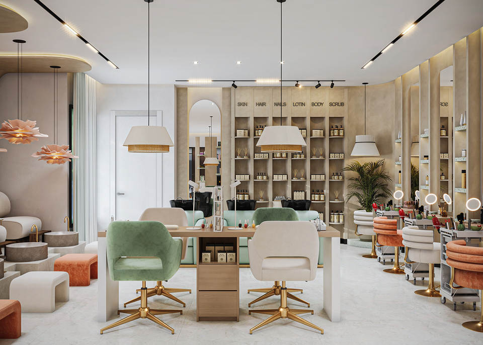 Customized Industrial Vintage Open Concept Layout Organization Barbershop Factory with LED Lighting