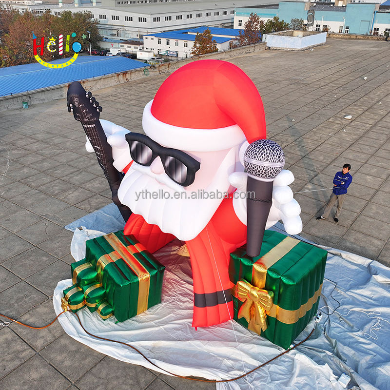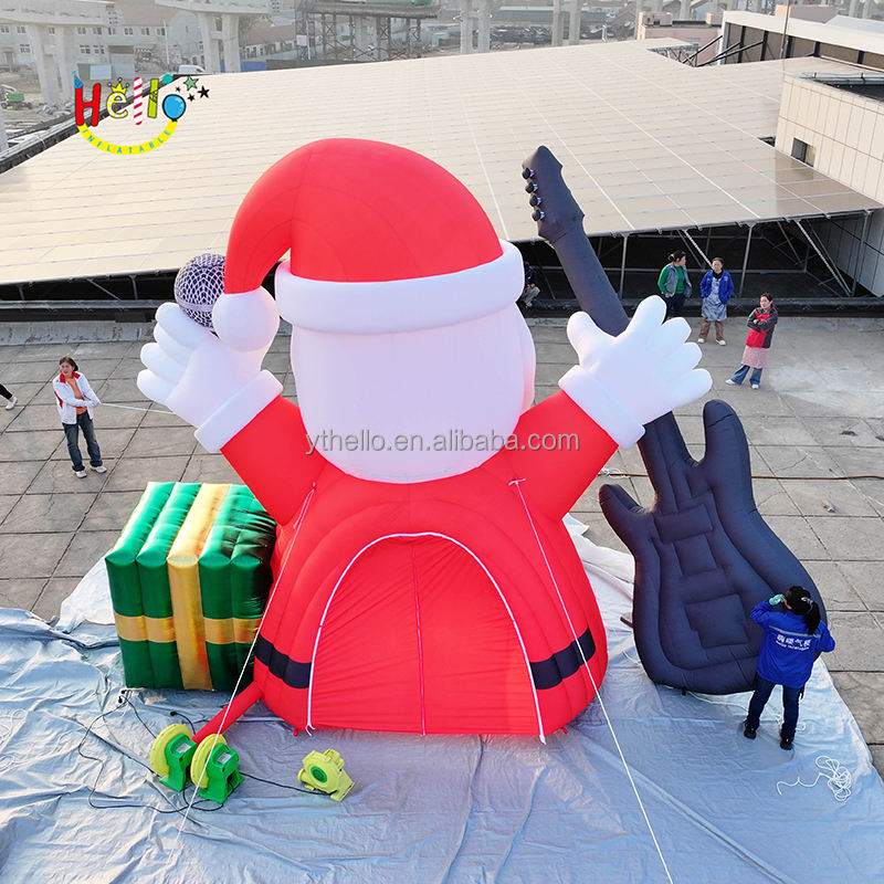 Customized Inflatable Christmas Blow up Santa Claus Inflatable Singing Santa With Guitar Microphone and Gift Box