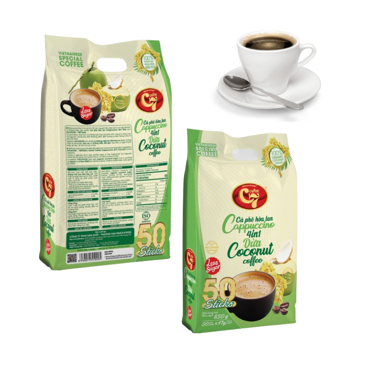 High Quality 4 1 Cappuccino Instant Coffee Coconut Cream Sugar Slimming Hot Water Box Mellow Fruit Direct Vietnamese