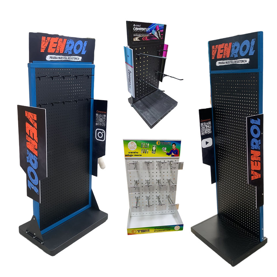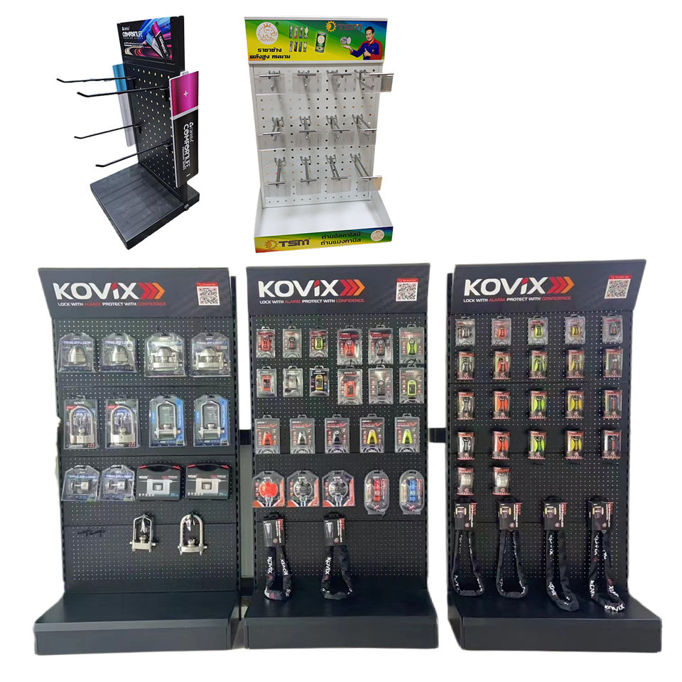 Customized Iron Supermarket Shelves Display Rack Plastic Counter Top Peg Board Spinner Rack Display