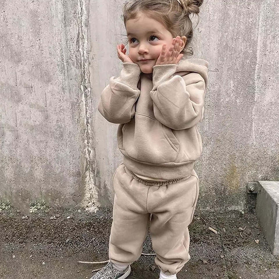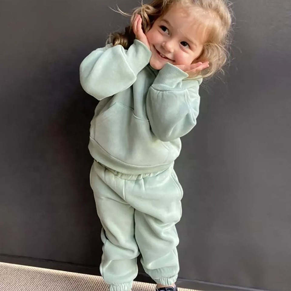 Customized Kids Soft Cotton Regular Fit Stand Collar Sweatshirt Cargo Jogger Set Tracksuits Boys Fleece Winter Casual