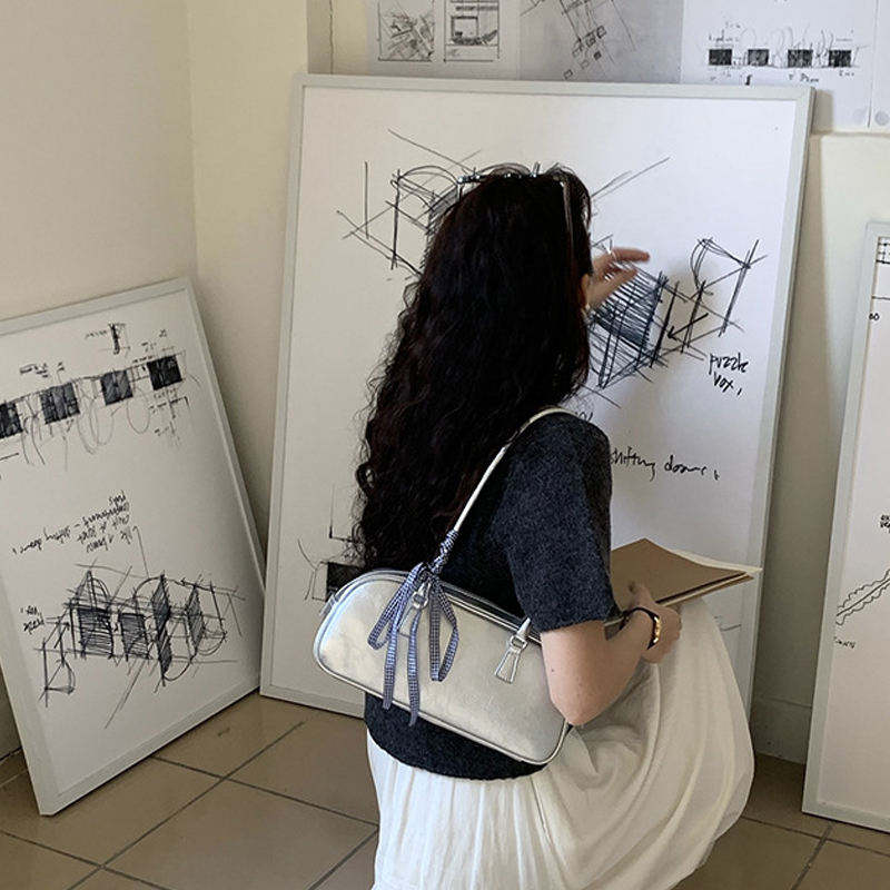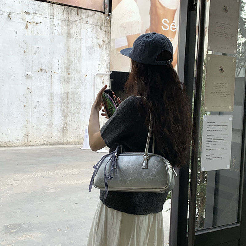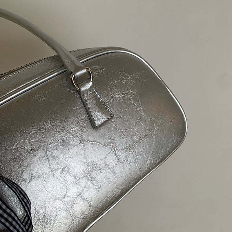 Customized Korean women's ballet style handbag, women's silver shoulder armpit bag, tote bag