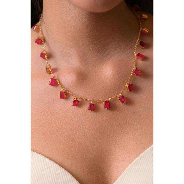 Customized Kundan Necklace Set In Rhodium Plated Brass With Artificial Red Stones Handcrafted Jewellery Design