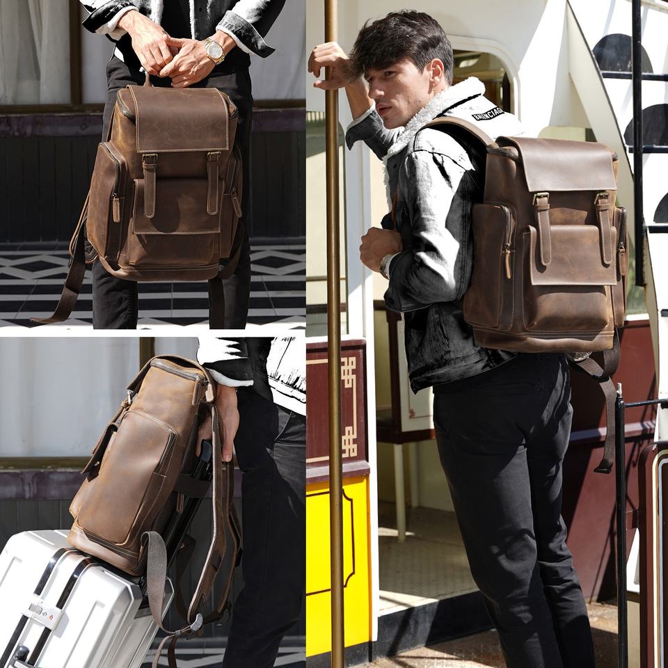 Customized Large Capacity Men's Tactical Daypack Durable Cowhide Multi-Pocket Casual Travel Camping Laptop Backpack Detachable