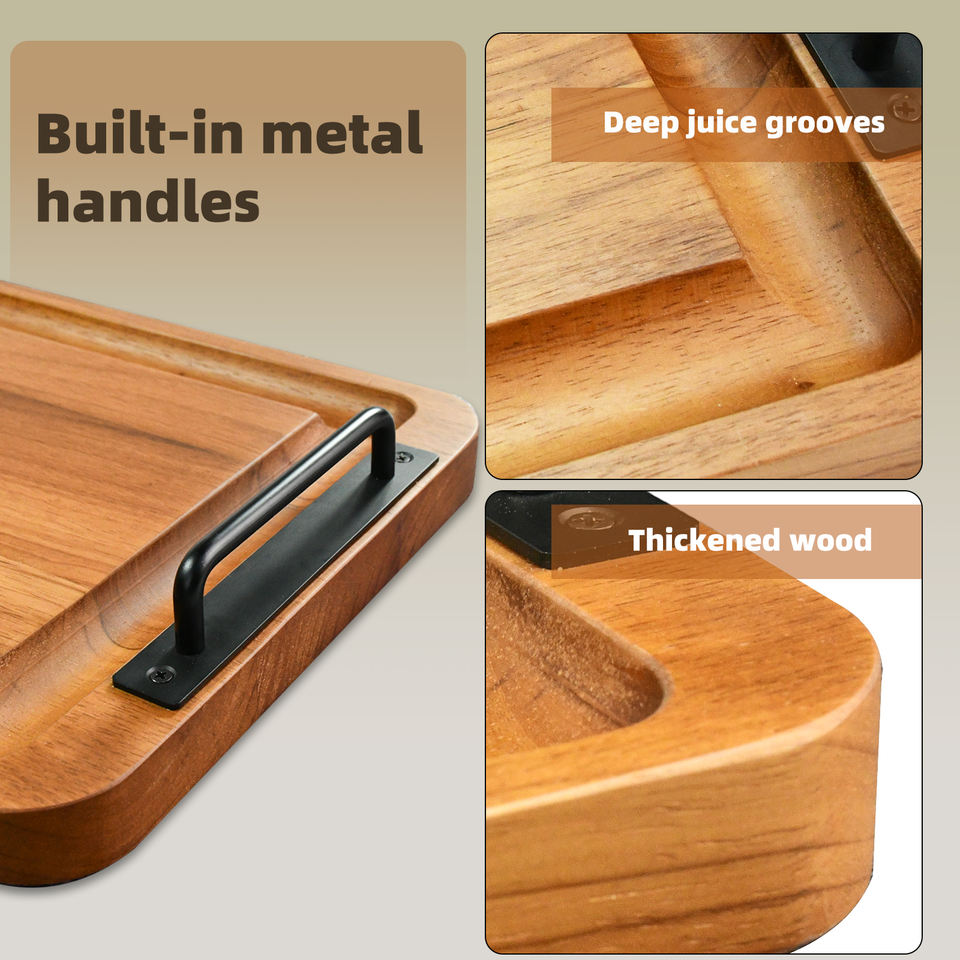 Customized Large Rectangular Wooden Charcuterie Board Extra Long Handle Modern Serving Tray for Kitchen Living Room Food