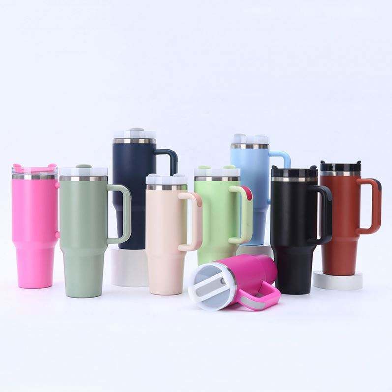 Customized Large Tumbler Car Cup Mugs 304 Stainless Steel Iced Coffee Cup Mugs 40oz Tumbler With Handle and Straw