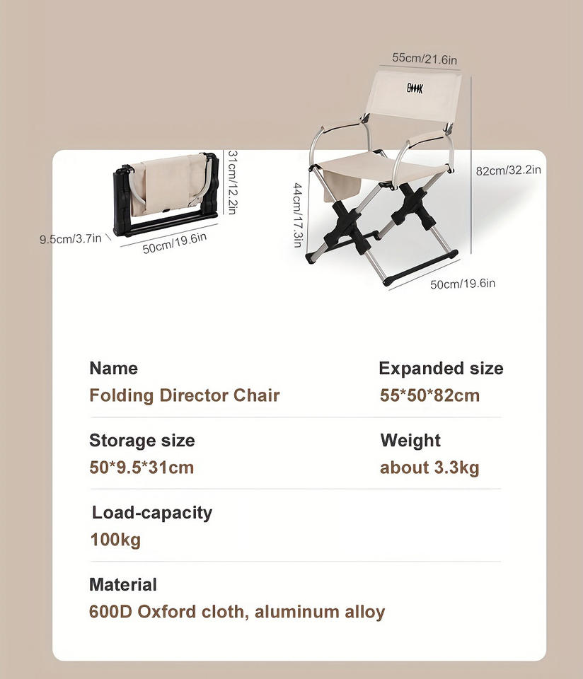 Customized Lightweight Aluminum Oxford Folding Camping Beach Fishing Chairs Quick Open Director Chair