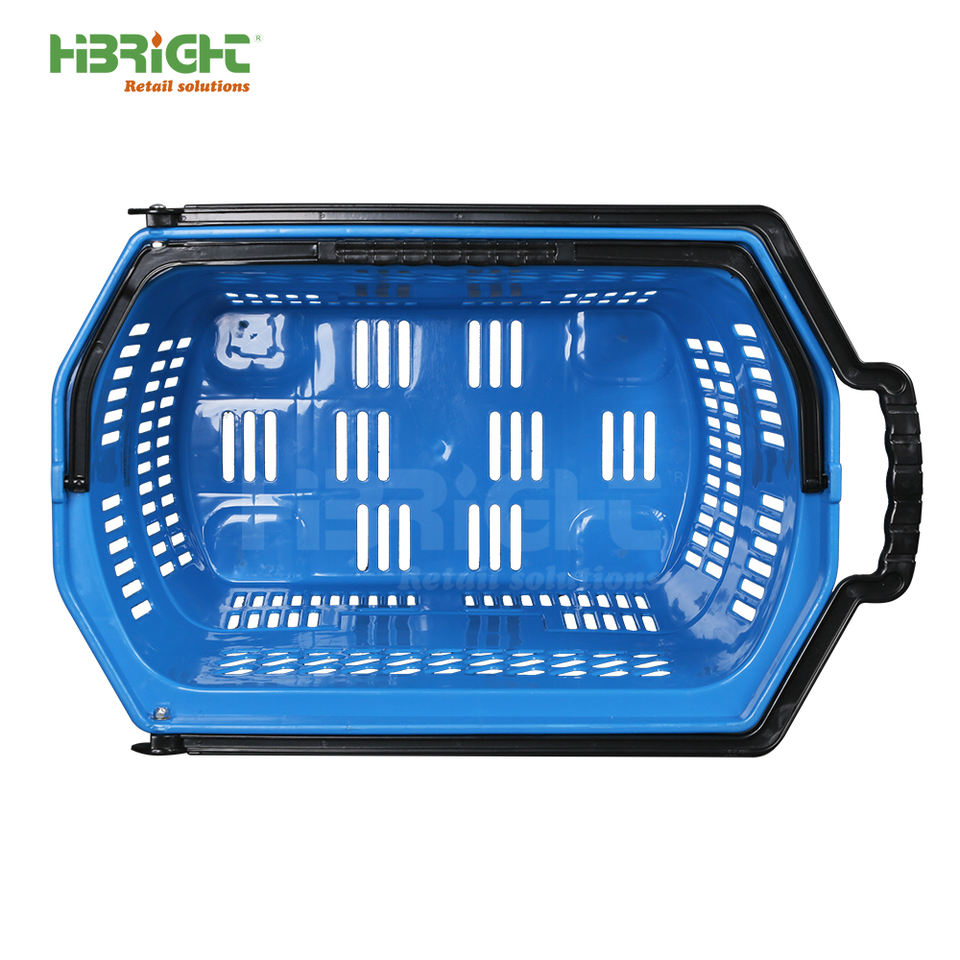 Customized Logo 42L Large Capacity PP Plastic Rolling Basket with Handles Casters for Supermarket Shopping Durable Convenient