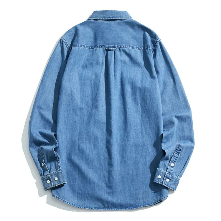 Customized Logo Casual Long Sleeve Denim Dress Shirts for Men New Design 100% Cotton Fashion Solid Pattern Knitted Weaving