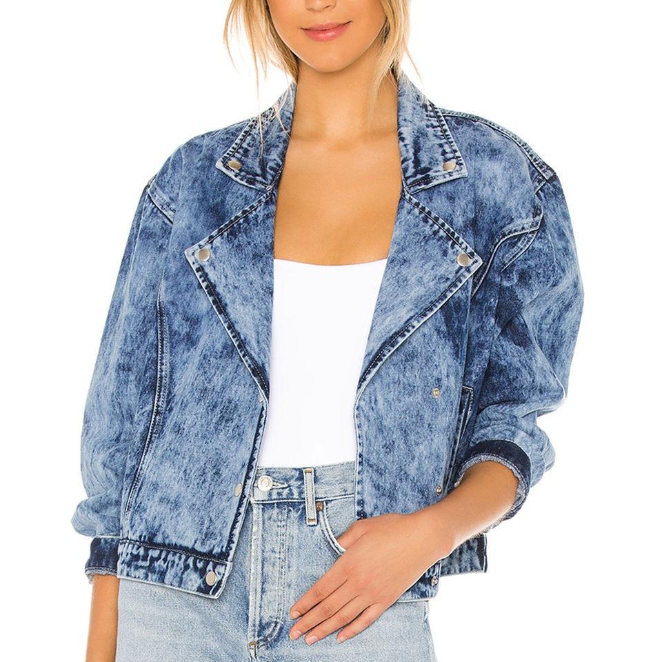 Customized Logo Design Breathable Denim Jacket For Women Cropped Denim Jacket Collar Zip Front Cargo Pockets Denim Jacket