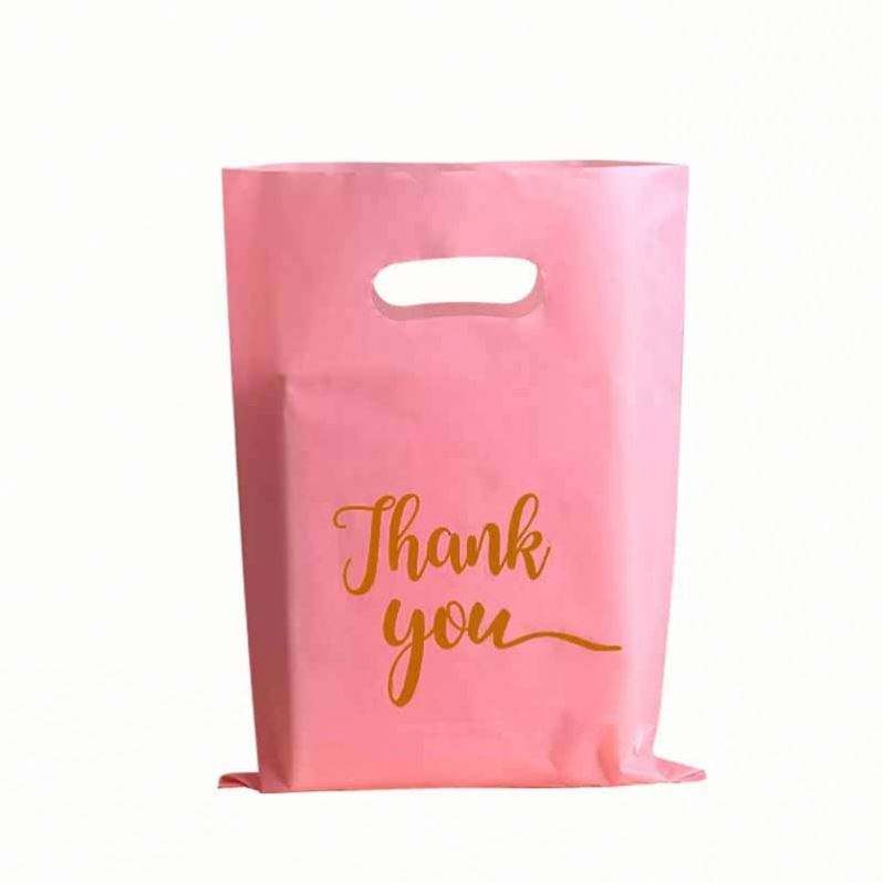 Customized Logo Die Cut Handle Foldable and Reusable Plastic Shopping Bag With Pink Shop Boutique Sizes for Carrying Goods