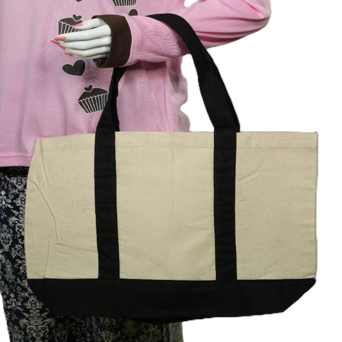 Customized Logo Eco-Friendly 100% Cotton Tote Bag Hand Length Handle Zipper Closure Natural Beige Canvas for Grocery Shopping