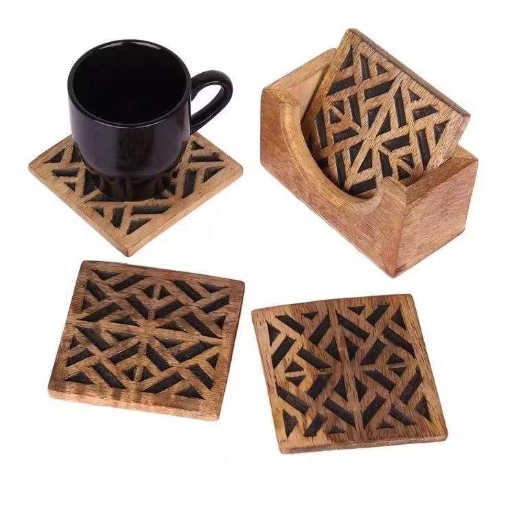 Customized Logo Engraved Laser Acacia Wooden Coaster Table Mat Home Use Cup Holders Insulation Mat Pad Drinks Made Marble