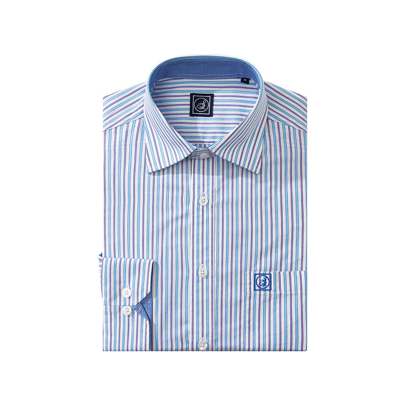 Customized Logo Full Sleeve Men's Shirts with Turn Collar 100% Cotton Formal Autumn Striped Pattern Yarn Dyed Embroidery Pocket