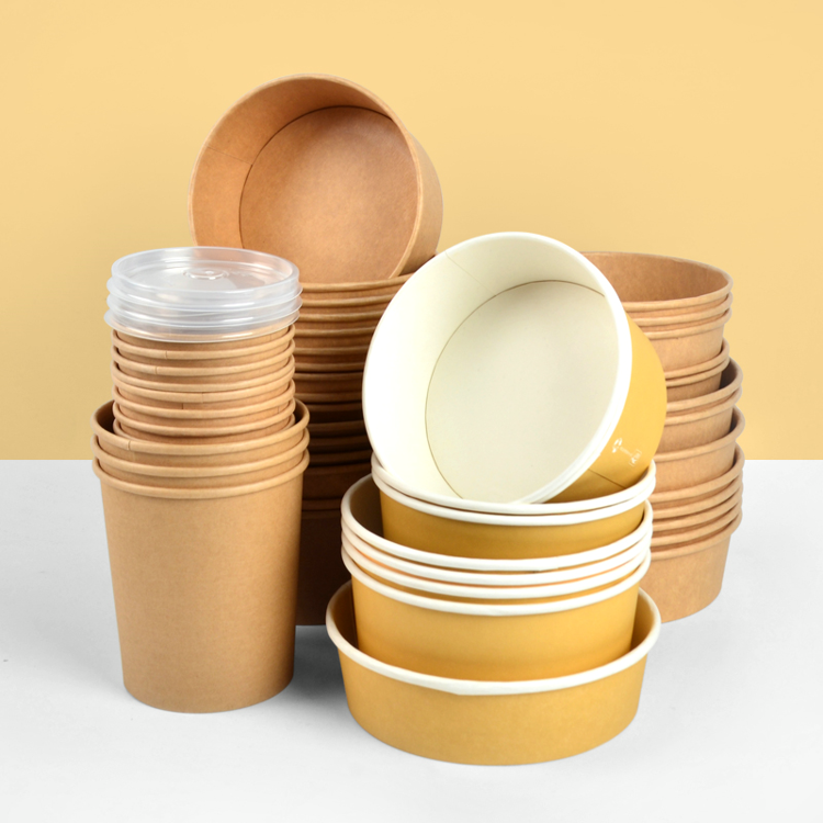 Customized Logo Low MOQ Disposable Paper Cup with Lid for Ice Cream and Dessert Serving