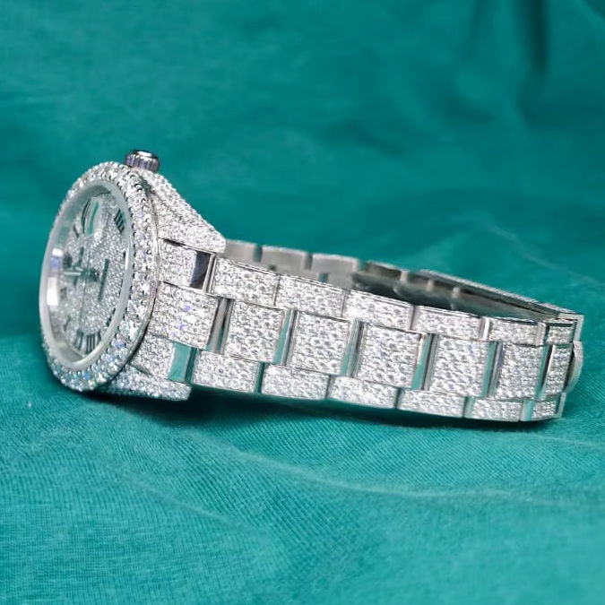 Customized Logo Luxury Iced Glass Crystal Rhinestone Business Stainless Steel Quartz Men's Watch with 5ATM Waterproof Moissanite