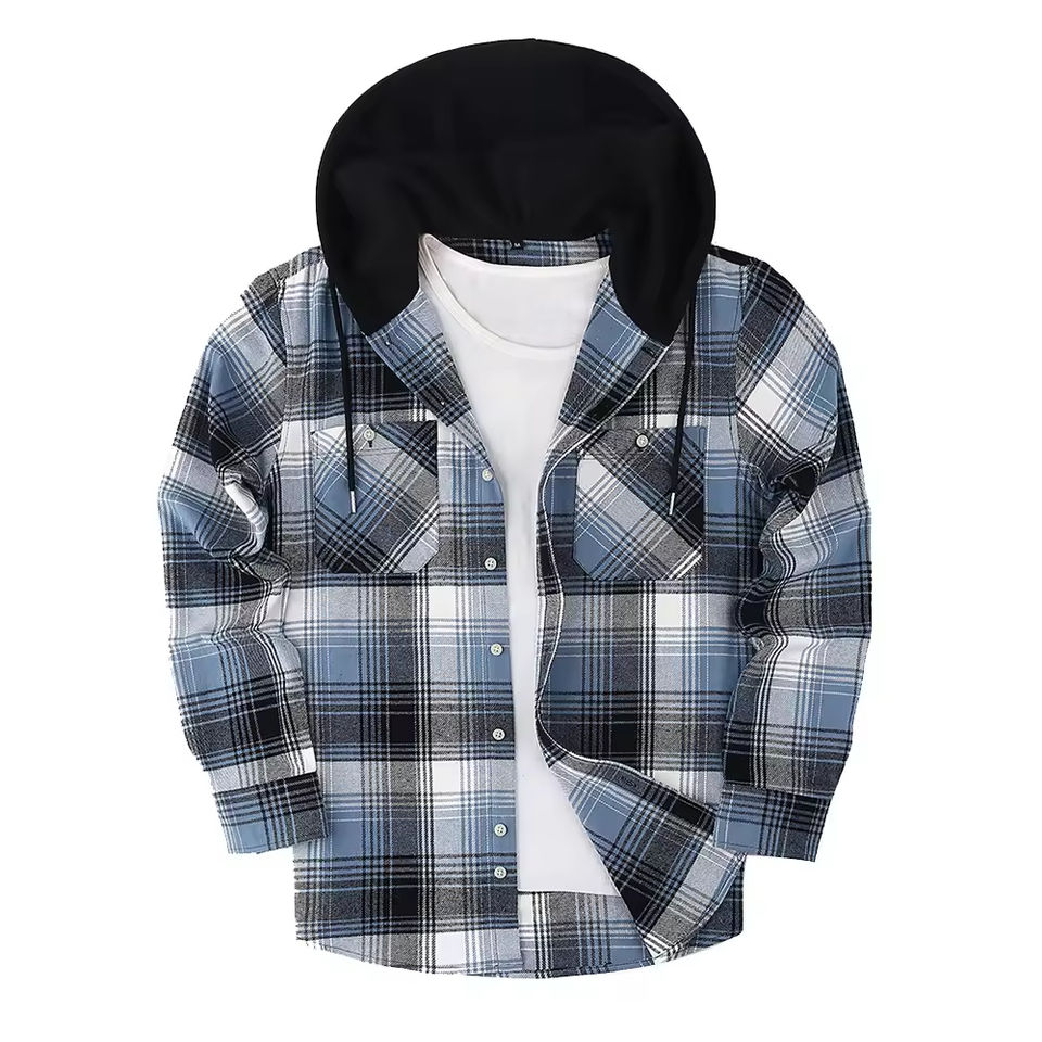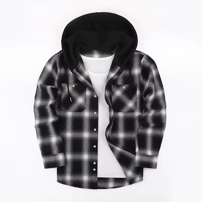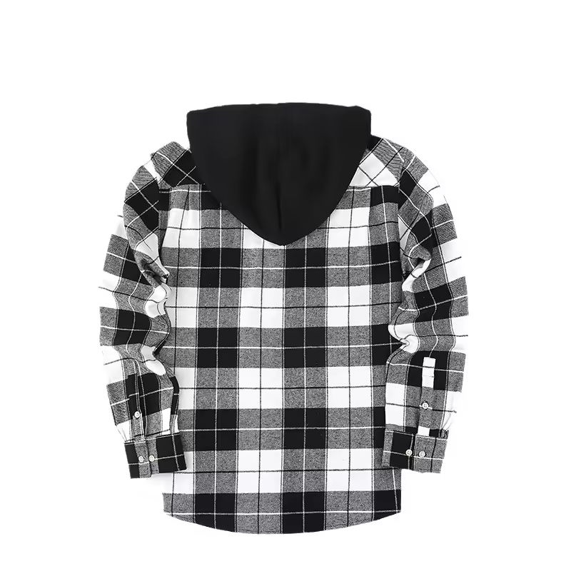Customized Logo Men's Flannel Hooded Shirt Oversized Warm Fashionable Casual Plaid Zipper Anti-Pilling Winter Cross-Border Style