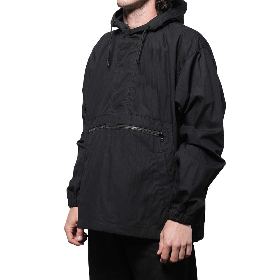 Customized Logo Mens Pullover Drawstring Hooded Linen Anorak Windproof Windbreaker Jacket for Men