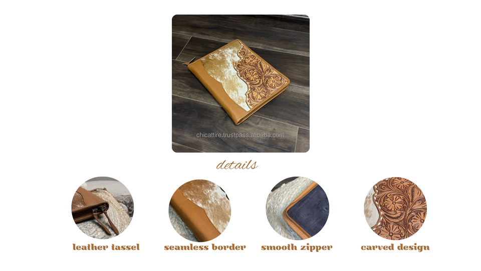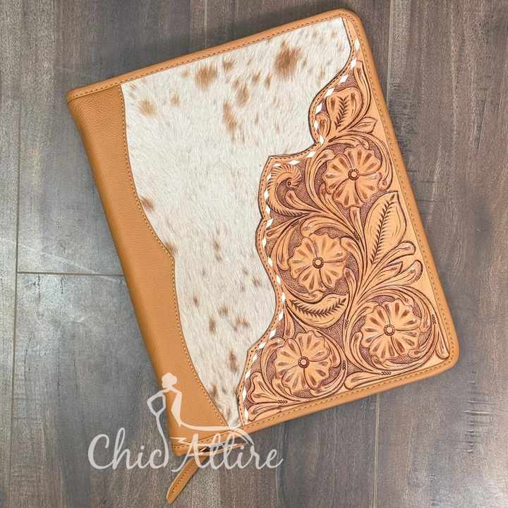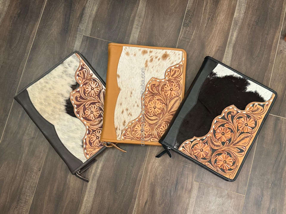 Hand Tooled Cowhide Leather Portfolio FolderProduct name