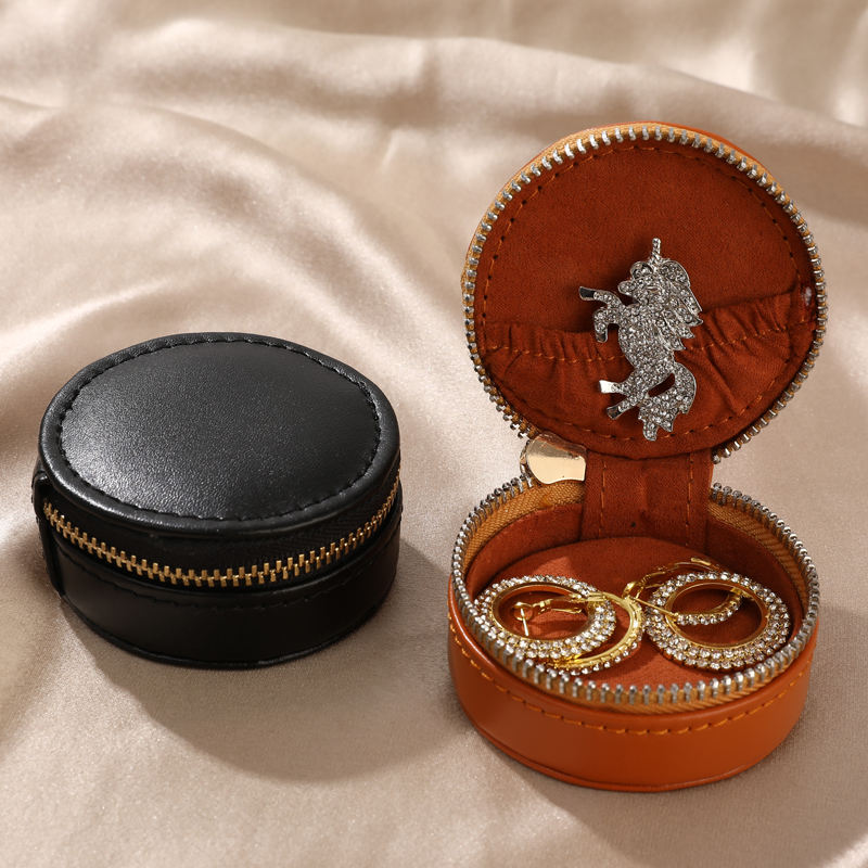 Customized Logo Portable Mini Leather Zipper With Tassel Ring Jewelry Bag Luxury Travel Necklace Earring Storage Jewelry Bag