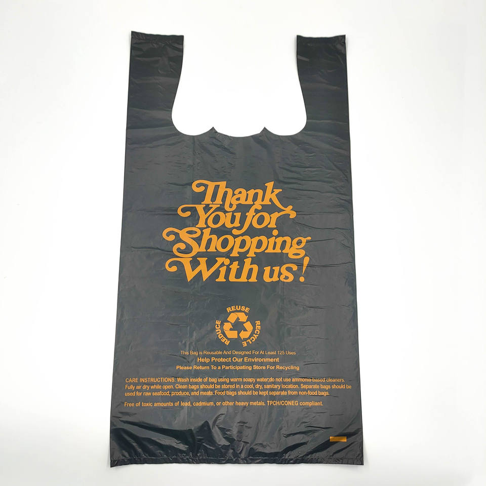 Customized Logo Print Heavy Duty Durable Strong T shirt Plastic Shopping Bag For Supermarkets