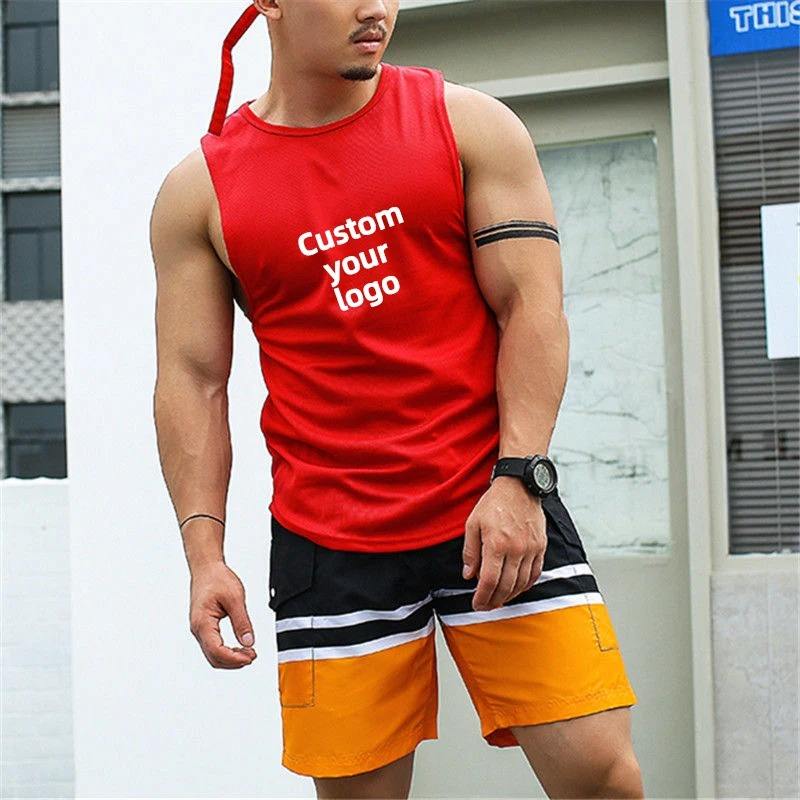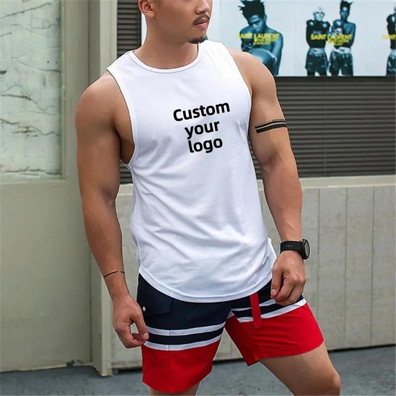 Customized Logo Print Men's Sleeveless Muscle Training Tank Top Cotton/Bamboo Breathable Fitness Vest for Workout